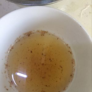 炒完京酱肉丝后锅中倒出的油。比较透明。不含酱汁