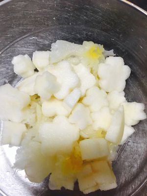 银耳洗净,泡发待用,雪梨去皮去核切成小块带用。