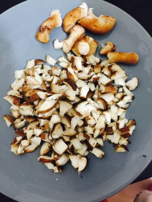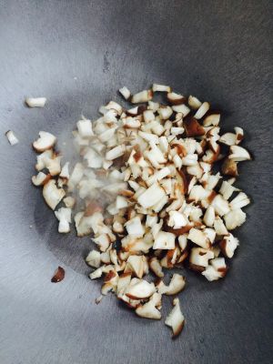 锅里水开香菇放进去焯水3分钟捞起来凉一点了剁碎,