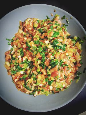 青菜出锅后一定要用纱布或者蒸笼布沥干水分!不然饺子会过湿,包起来全是水!而且调味没法和谐