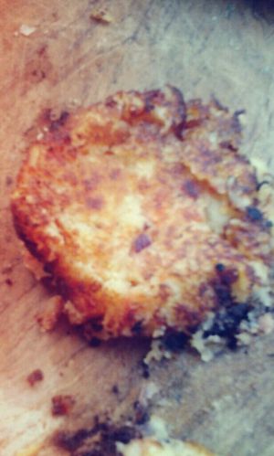 把搅好的馅团成团压成饼,电饼铛里放点油,把饼放入两边煎焦黄放点胡椒粉即可