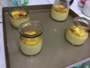 取出烤好的布丁,烤好的布丁冷藏食用味道更佳。