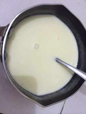 牛奶加奶粉拌匀,加热,未沸腾就关火