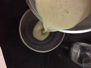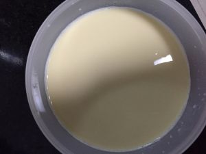 挑掉大气泡,然后静置一会儿,布丁液就做好啦!