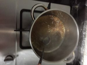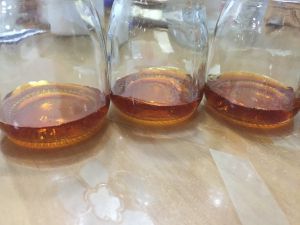 趁热把焦糖倒进瓶子中,焦糖遇冷会变硬,所以速度要快,我装到第4个的时候,糖浆已经开始粘稠了!刚好4个的量!稍等就会变硬!