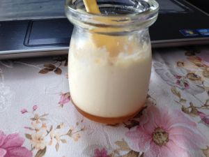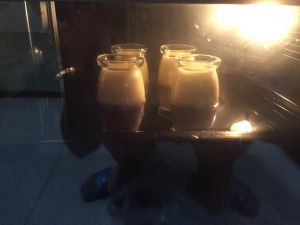 把焦糖趁热倒入布丁瓶,在把混合好的牛奶鸡蛋倒入布丁瓶