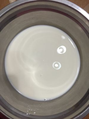 牛奶倒入糖粉!如果没有糖粉,可用白糖代替,但最好牛奶要加热,让白糖融化!
