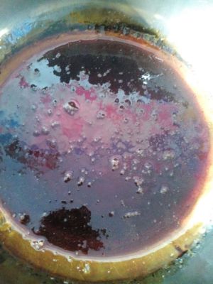 转小火,煮到颜色变成棕红色,这时候很关键,千万别糊了,倒入20克的开水,要注意从锅边倒进去,手不能放在锅的上方,会有热蒸汽和水花溅出,小心烫伤!