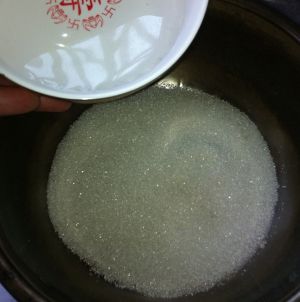 白糖边煮边搅动,当溶化到深色的时候(注意一定要小火,不让糖很快会焦了,有苦味。),加入开水继续搅拌,焦糖就好啦。然后倒入容器中,放入冰箱冷藏一会。