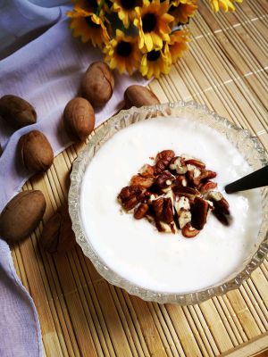 早上起来放进冰箱几个小时就可以吃啦,自己加糖加蜂蜜水果都可以