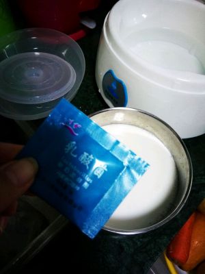 将纯牛奶连盒放到热水里烫下,杀杀菌(不烫也木关系滴)烫牛奶的同时将做酸奶的工具(带盖的保险盒,玻璃碗...都可以)用开水泡个2分钟,然后将热牛奶到到碗里放到不烫手,这个时候就可以放2勺酸奶了,把酸奶和牛奶搅拌均匀!