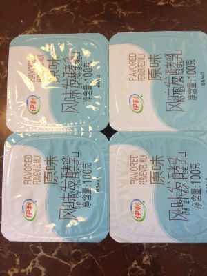 4盒纯牛奶倒入容器里面,加入酸奶发酵剂,搅拌均匀!