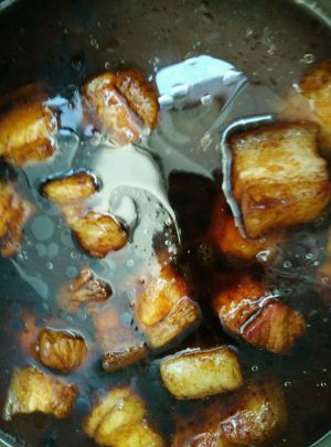 待肉块颜色均匀,煸炒出油,放少量料酒,放入调料,还可以再放一些腐乳汁,酱油,继续翻炒片刻,颜色口味更佳。