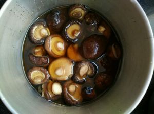 香菇放炒锅里,翻两下,倒入两勺香菇水,等收汁,盛出即可