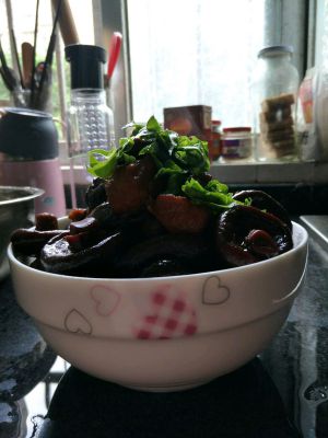 加入香菇,以文火烧制50分钟,其间加盐并数次翻动即可。