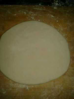 这个时候面团醒得差不多了。在案板上撒一层面粉,取出面团,揉光滑。