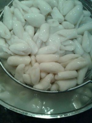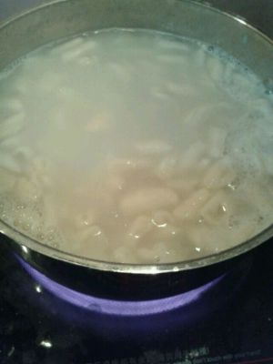 汤锅烧水,水烧开后放入猫耳朵,煮熟后捞到提前放了凉水的盆里。
