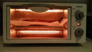 烤盘铺上油纸,放入腌好的鱼(我是鱼肚朝下放,),200℃烤25分钟
