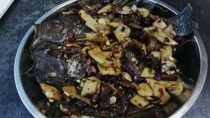 最后一步,把炒好的辅料倒入盘子里装盘即可,一盘香喷喷的烤鱼就做好了!
