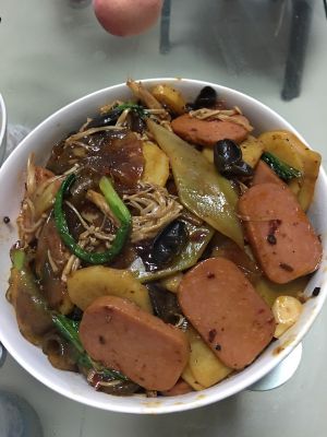 使用海底捞麻辣香锅料,食材提前焯水,使用香料炒制而成