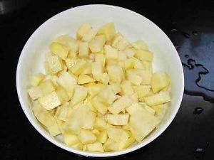 1、土豆两个切小块,上锅蒸熟,时间约20分钟左右;