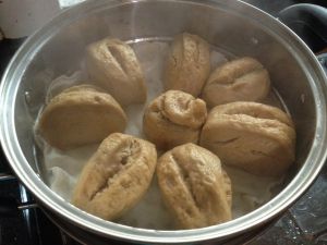 加了红糖和的面团,这个是做馒头的。与不加糖做包子的分开和面。
