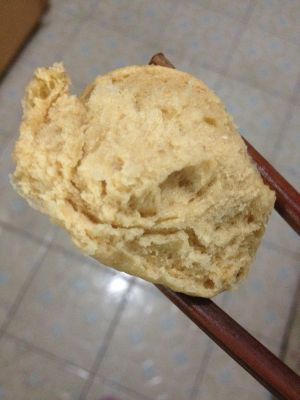 发酵好的面团呈蓬松,蜂窝状,很软。