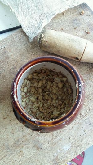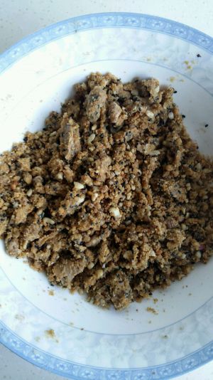 加入芝麻、红糖、猪油拌匀,陷做好了