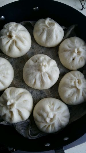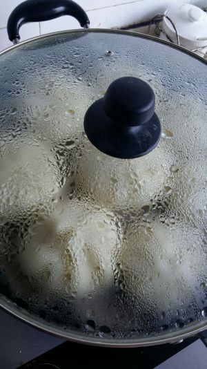 锅内加四五十度温水,包好的馒头直接放上面醒发,大约二十分钟左右就可发好