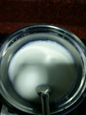 牛奶加热后,温热就可以了,离火放入白糖搅拌均匀,在这里也放入发酵母搅拌均匀,但是我用的是不用发酵的发酵母所以在这里我没有加入哦,我直接把发酵母放到面粉里面攪匀。