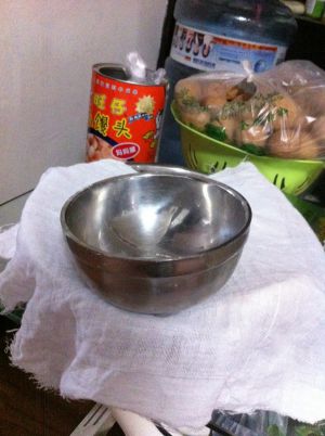 这是量面的碗,就是我家宝贝用的小碗,白面粉3碗,荞麦粉1碗,鸡蛋2颗,水小半碗,3克酵母,我用面包机揉面。