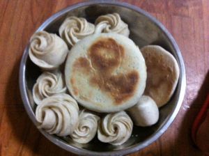 我家蒸锅小,顺便用电饼铛烙了饼,这就是成品。
