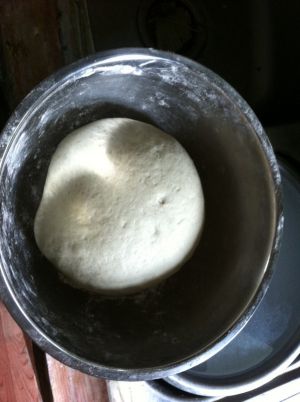 将面粉,揉成光滑的面团,用保鲜膜或者湿布盖上,在温室中发酵至3倍大小