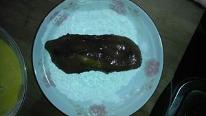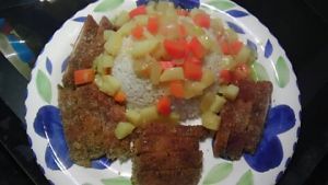 配上自己做的咖喱和饭,变成咖喱鸡排饭,很好吃!^ω^