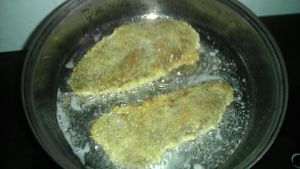 锅内放油,烧热,把鸡排放进去炸,火不要太大,免得糊掉。炸到两面金黄就可以了,如果肉很厚,可以在上面戳几个小洞,熟的更快些。