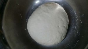 面粉、干酵母、清水分别入碗,先用筷子搅拌成絮状,再手揉成无干粉的面团;