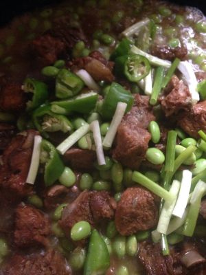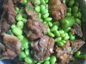 焖好加毛豆翻炒烧5分钟,试试味道、咸淡自己控制、咸可加些开水、淡在加点盐。