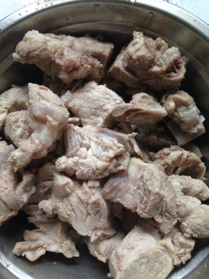 排骨洗净 冷水下锅 加姜片 葱结适量料酒大火煮开后捞出洗净沥干备用