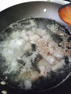 冷水下锅,焯排骨,去掉血沫,中火煮开3分钟左右,关火,排骨捞出去备用,水倒掉