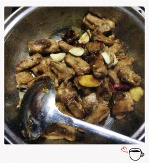 先把料酒倒进去继续翻炒,等水分差不多干。再加入生抽,继续干炒至水分差不多干,最后加入老抽继续翻炒,等上色后倒入开水把肉淹没盖上盖子,然后放一个橘子皮进去。 过程中一直不放油哦