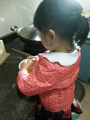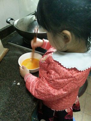 鸡蛋打到碗里,一个大馒头配两个鸡蛋,多一点也没事