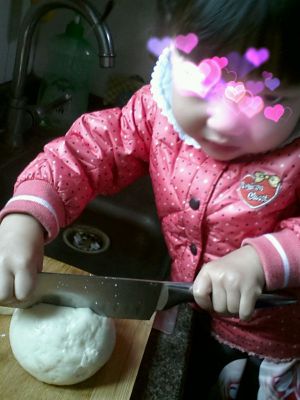 将面团擀成约2毫米片状,切去周边成方形状,刷上一层食用油