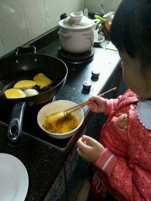 煎成金黄色就可以出锅了,剩下的鸡蛋液倒进锅里煎成炒鸡蛋。