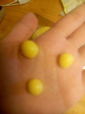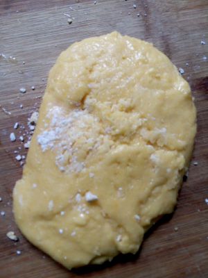 把蛋黄加入白糖,奶油打发,再筛入所有粉类混合成面团