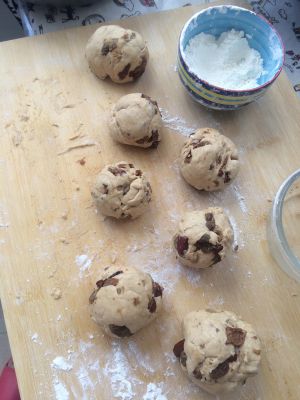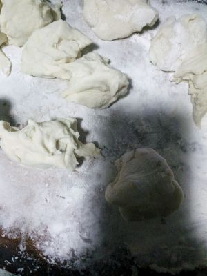 面团揉好后,醒十分钟继续揉个十分钟左右,然后分成一小团一小团的饧子