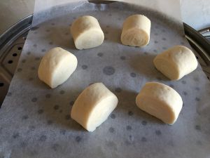 揉搓成光滑的面团,室温发酵至2倍大。取出,再揉制10分钟左右,分成小面团、滚圆、入蒸锅中饧发15分钟左右。水开后蒸15分钟,关火后焖3~5分钟即可