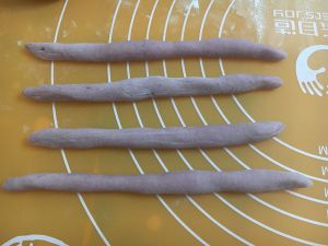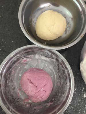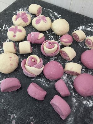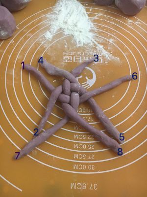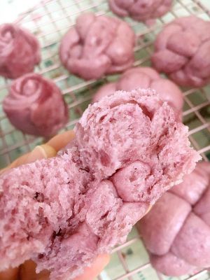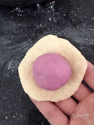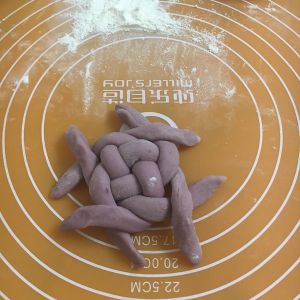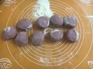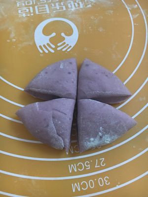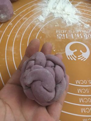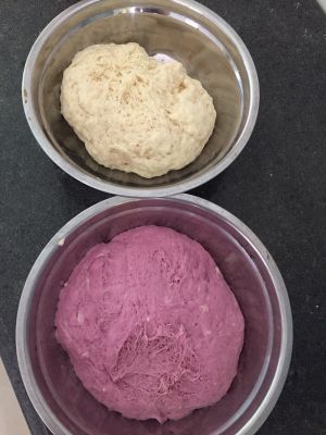 酵母粉白糖用温水泡10分钟左右 放面粉里一起揉面 水不用放太多,紫薯是压成泥再放面粉放酵母水一起揉面