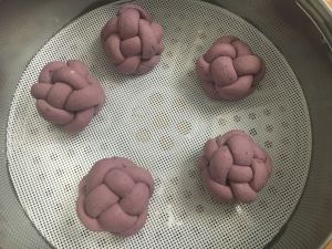 蒸锅放足冷水,蒸屉刷油或者铺屉布,把做好的绣球馒头放进去,盖好醒发30分钟,大火烧开转中火,蒸18分钟,关火焖五分钟后出锅。