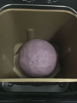 将中裕雪花小麦粉、紫薯、牛奶、细砂糖、盐、酵母放入面包机中