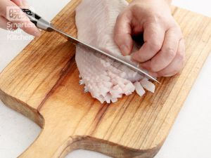 青鱼肉洗净后,去掉大骨,改刀成十字花刀,后再切成块。